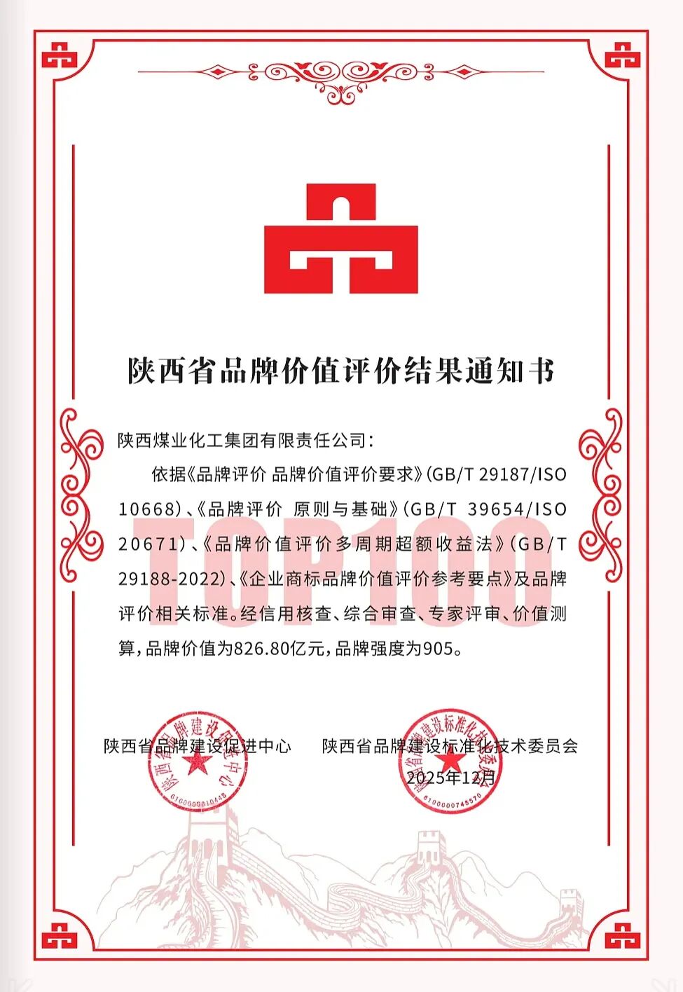 陜煤居榜首!全省品牌價值TOP100發(fā)布